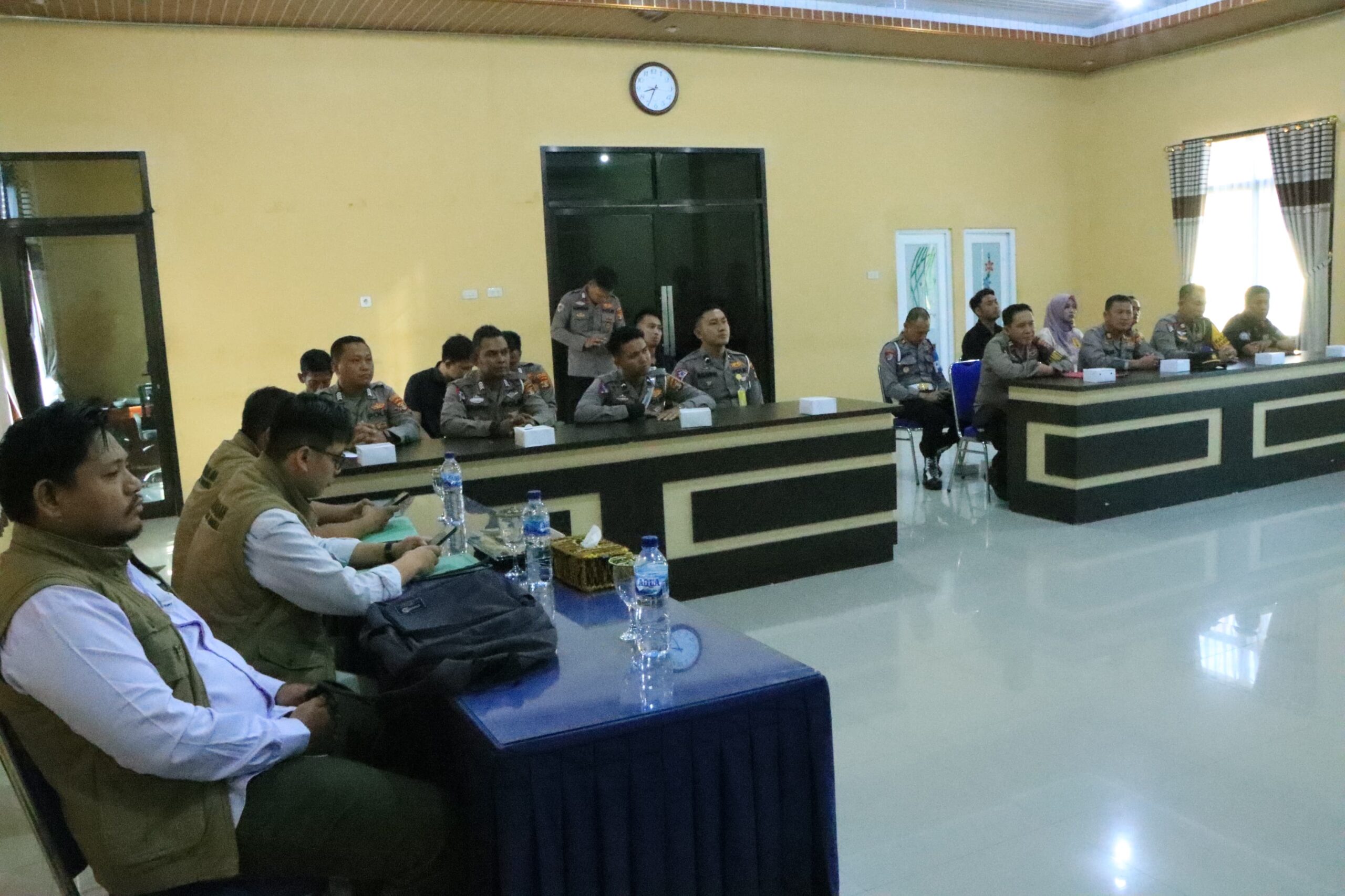 Saat tiba di Mapolres Tulang Bawang Barat, tim dari Perwakilan Ombudsman RI Provinsi Lampung disambut langsung oleh KapolresTulang Bawang Barat AKBP Sendi Antoni, S.I.K., M.I.K, bersama Pejabat Utama (PJU) Polres Tulang Bawang Barat dan Para Operator Yanlik SPKT, Satlantas, Satintelkam dan Siwas Polres Tubaba