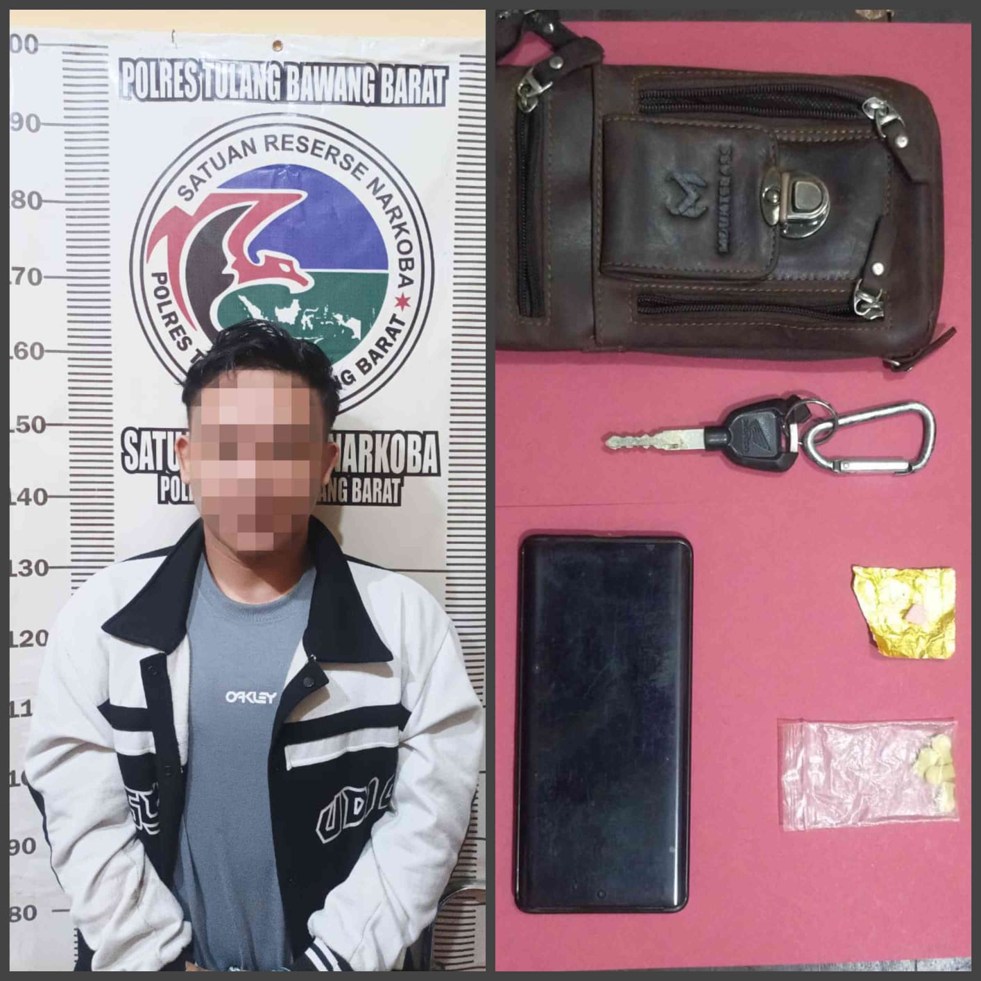 GerbangAndalas.com, Tulang Bawang Barat- Satuan Reserse Narkoba Polres Tulang Bawang Barat, Polda Lampung menangkap terduga penyalahguna narkoba jenis Extacy di depan Masjid Al Iman yang terletak di Tiyuh Indraloka Kec. Way Kenanga Kab. Tulang Bawang Barat, Selasa (11/09/2024) dini hari