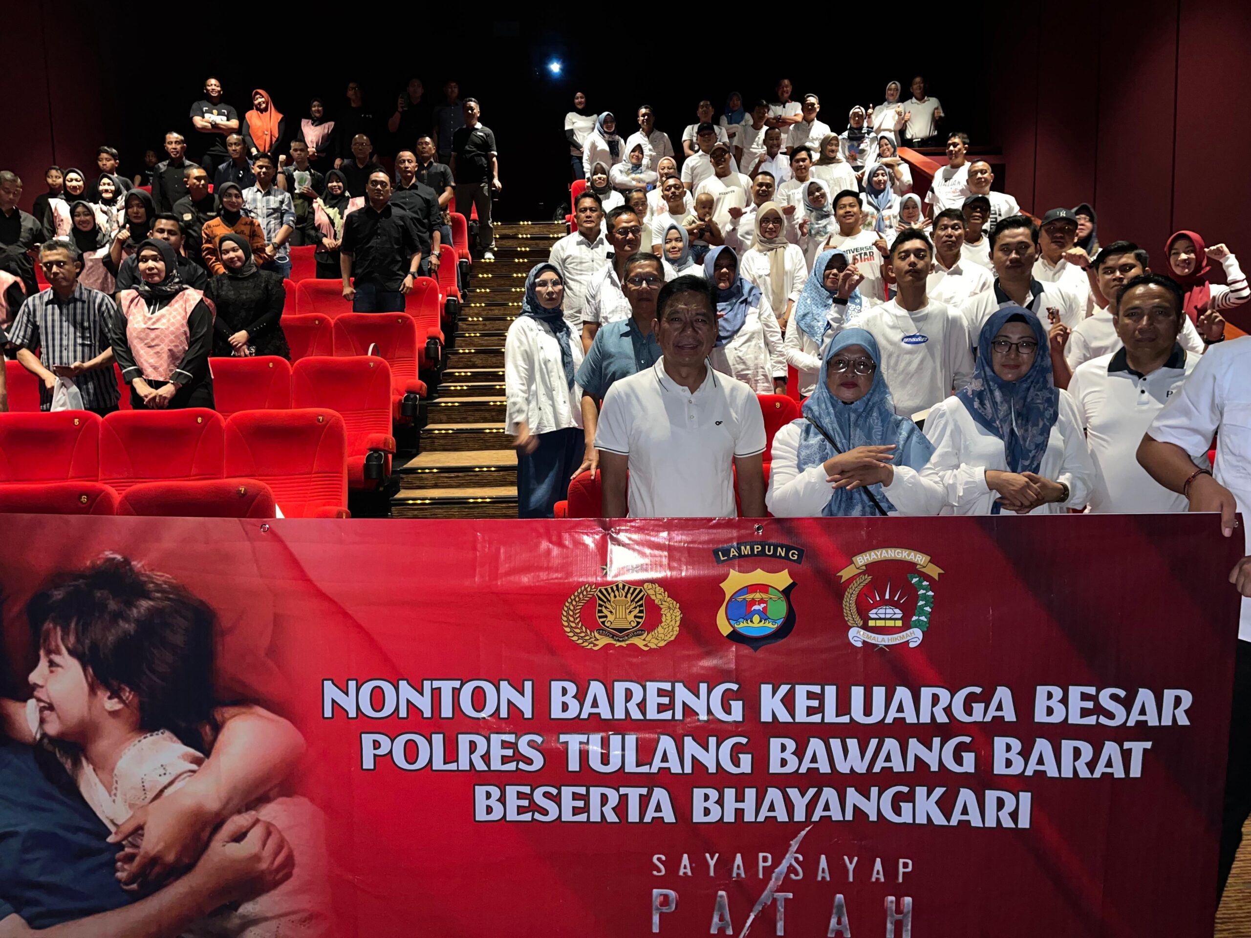 GerbangAndalas.com, Tulang Bawang Barat- Kapolres Tubaba Polda Lampung AKBP Sendi Antoni, S.I.K., M.I.K didampingi Ketua Bhayangkari Ny. Nina Sendi Antoni, Wakapolres, para Pejabat Utama dan Pengurus Bhayangkari serta segenap keluarga besar Polres Tubaba melaksanakan nonton bareng (nobar) film Sayap-sayap Patah II di Studio 6 (enam) Mal kartini XXI Bandar Lampung, Minggu (18/05/2025) Siang