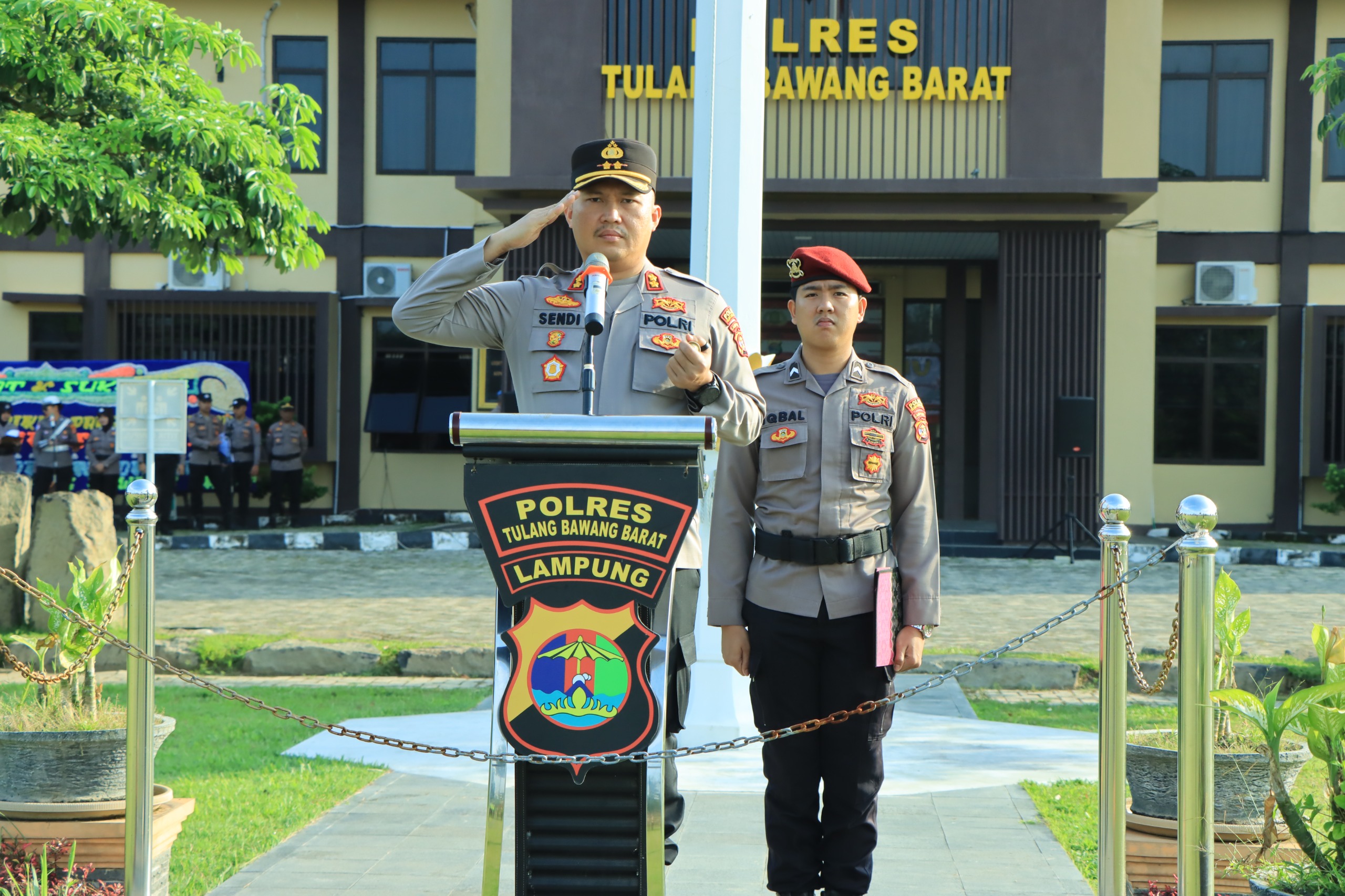 Upacara tersebut dipimpin langsung oleh Kapolres Tulang Bawang Barat AKBP Sendi Antoni, S.I.K., M.I.K., dan diikuti oleh para Pejabat Utama (PJU) Polres Tubaba, Para Kapolsek Jajaran Polres Tubaba, para perwira, bintara Polres dan Polsek Jajaran Polres Tubaba.