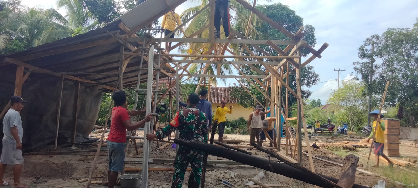 Babinsa 426-02 Menggala, Gotong Royong Bersama Warga Bangun Rumah