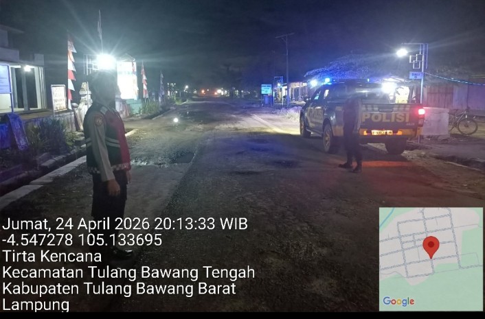 GerbangAndalas.com, Tulang Bawang Barat- Dalam rangka menjaga situasi kamtibmas tetap aman dan kondusif, Satuan Samapta Polres Tulang Bawang Barat, Polda Lampung melaksanakan patroli malam hari guna mengantisipasi gangguan keamanan dan tindak pidana di wilayah hukum Polres Tulang Bawang Barat, Jumat (24/04/2026)