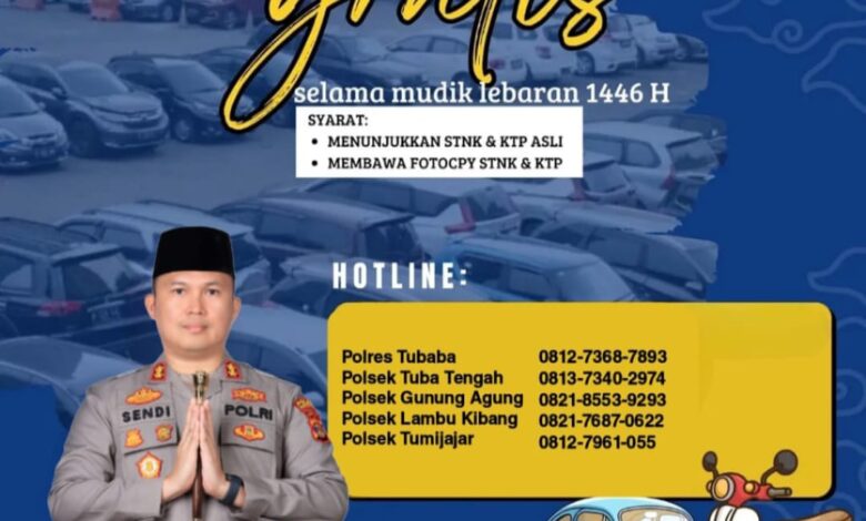 GerbangAndalas.com, Tulang Bawang Barat- Untuk memberikan rasa aman bagi masyarakat yang hendak mudik Lebaran, Polres Tubaba Polda Lampung membuka layanan…